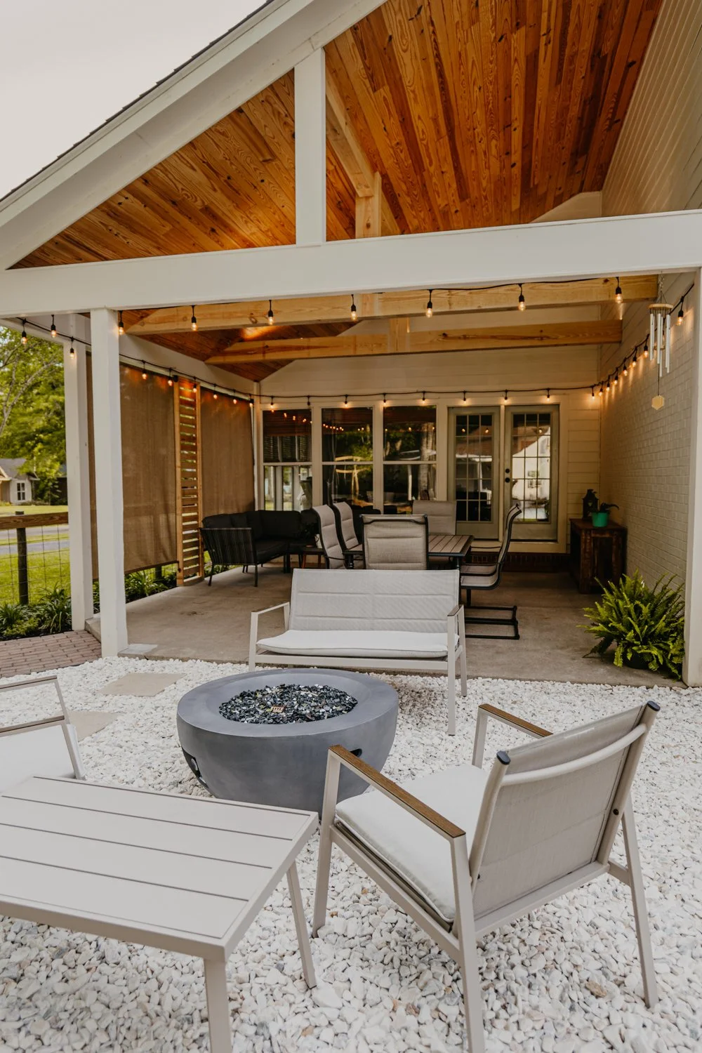 In all transparency, this isn’t our back patio space. This is actually Dylan’s parents! For some background context, we have used his parent’s garage at one house and most recently, their detached garage for our shop. Since we have gotten married and moved into our own house, we moved the shop with us. To give back for all those years of allowing us to use their space, we wanted to create a dreamy outdoor living space they both can enjoy.