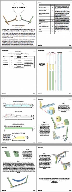 These Hammock Stand Plans include a STEP-BY-STEP PDF document including a material cut-list and cutting layouts. These plans are color coordinated for ease of use, but if you ever have any questions feel free to email us!